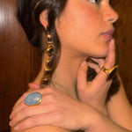 If we’re meant to shine this holiday season, let’s do it with jeweled hands. Pisco Sour Ring, a sleek gold ring crowned with a smoky grey stone.