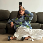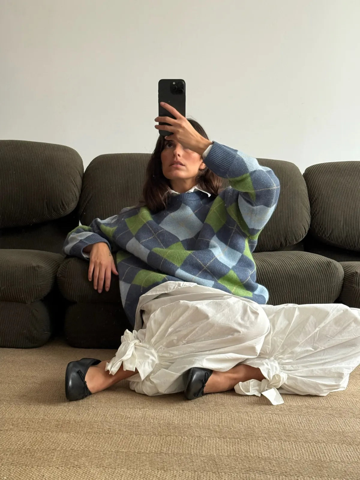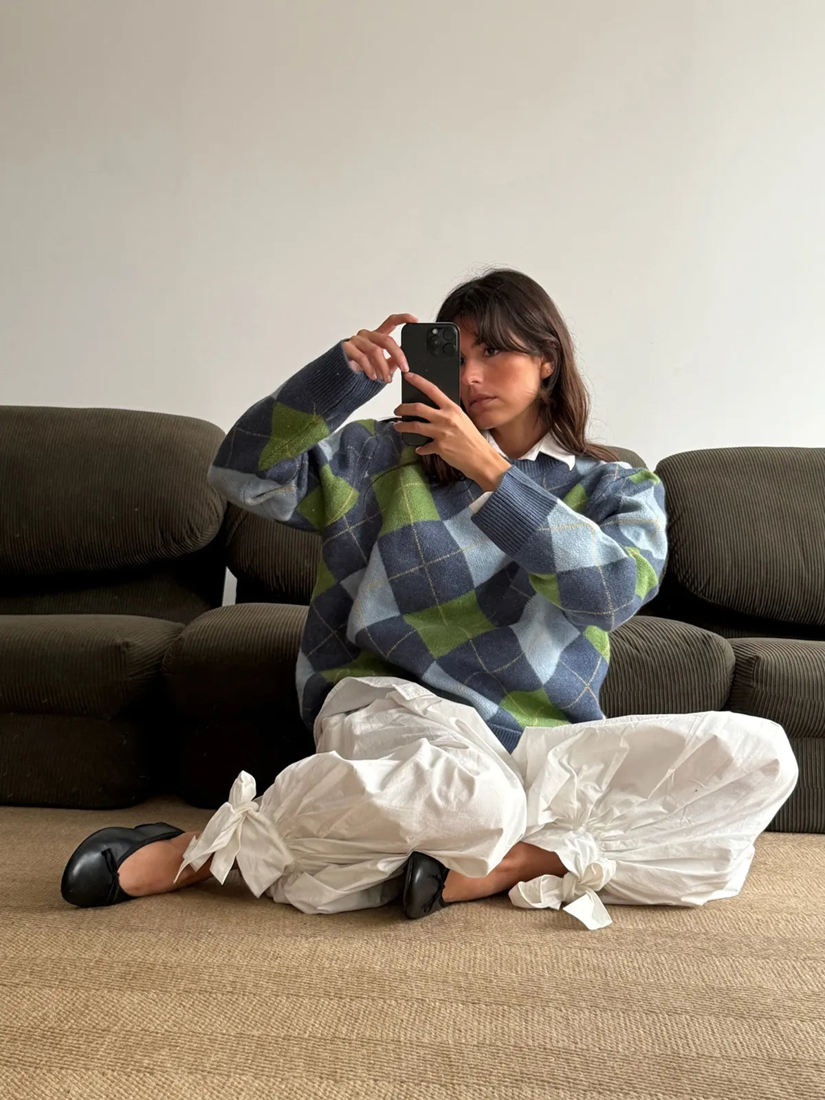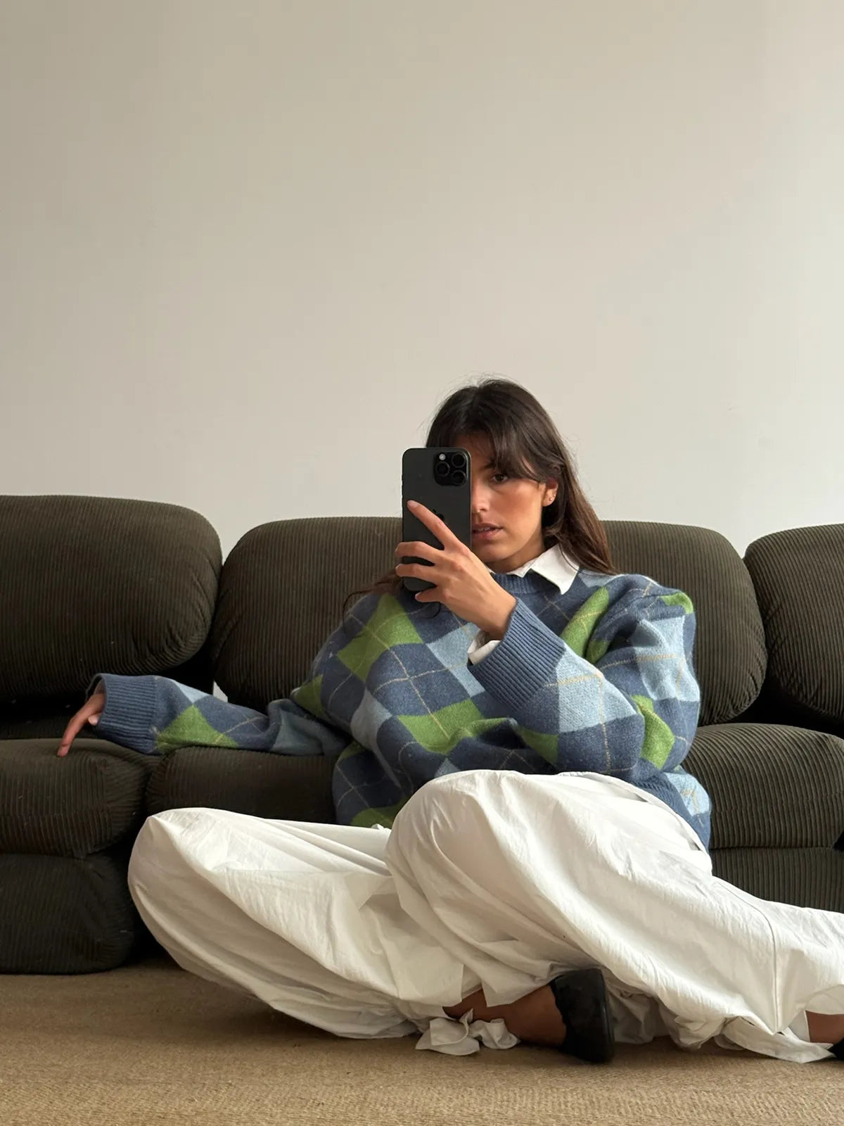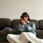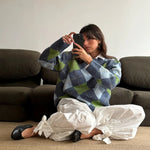 Shades of green and blue diamond knit that feels like coming home. The one your mother made you wear, the one you now miss on quiet winter afternoons.