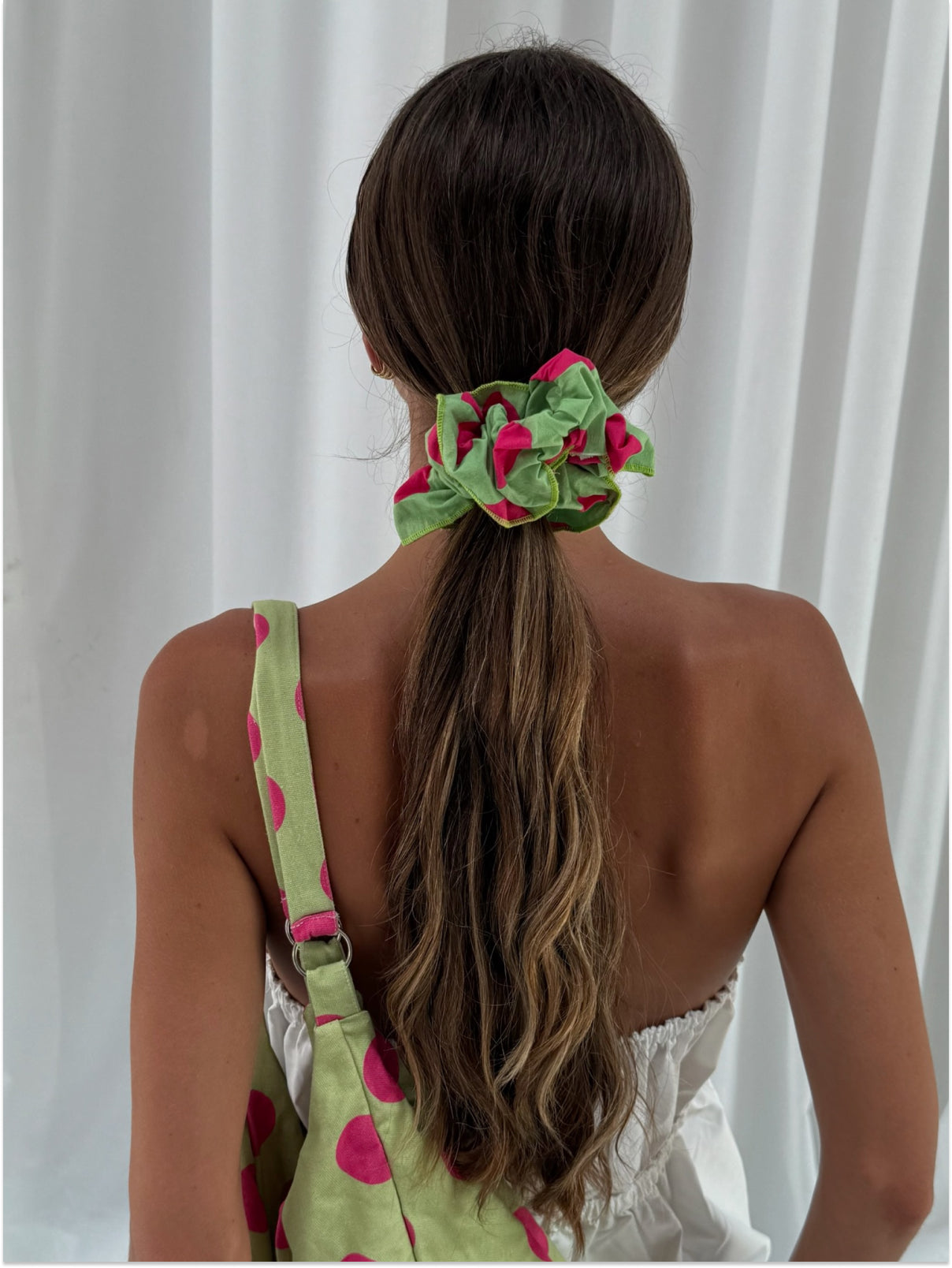 Playful polka dots and perfect hold! Mati Scrunchie adds a little touch to every ponytail.