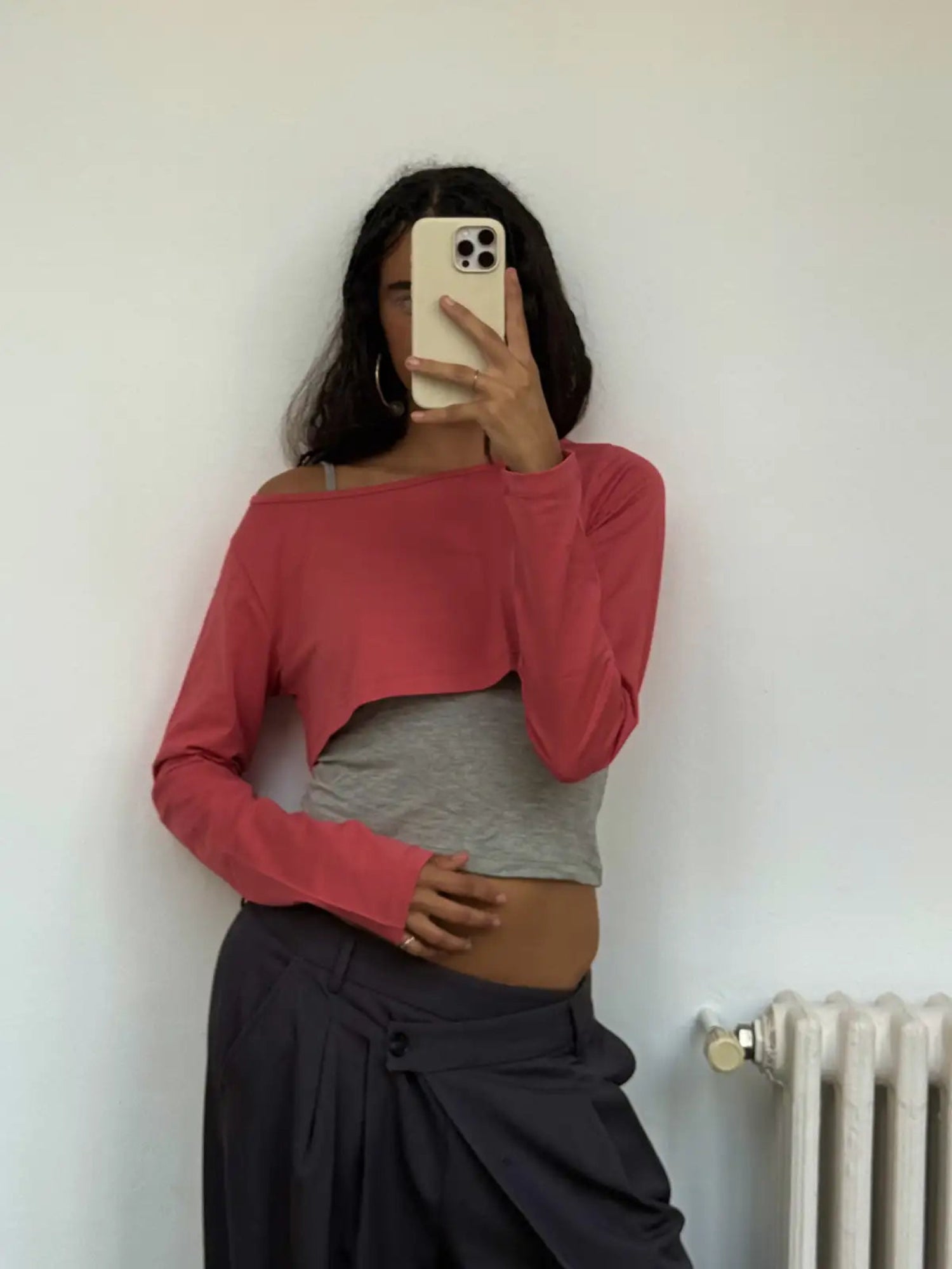 With clean lines and a warm pink hue, this piece grounds your look with quiet power.