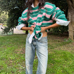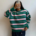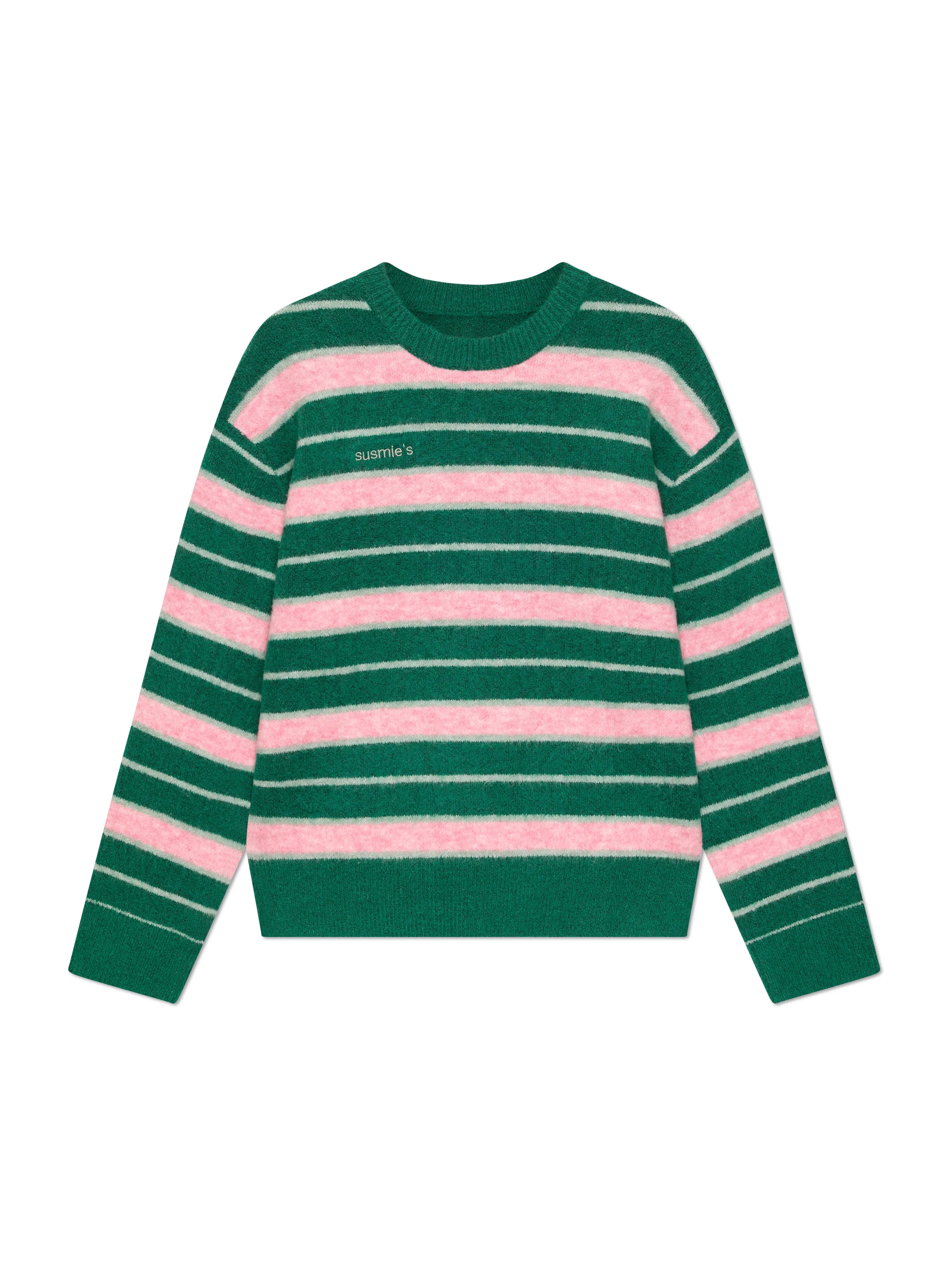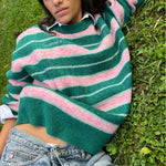 Green and pink stripes that feel like a quiet afternoon in the countryside. The sweater you once left behind, now it smells like home and memories you didn’t know you missed.