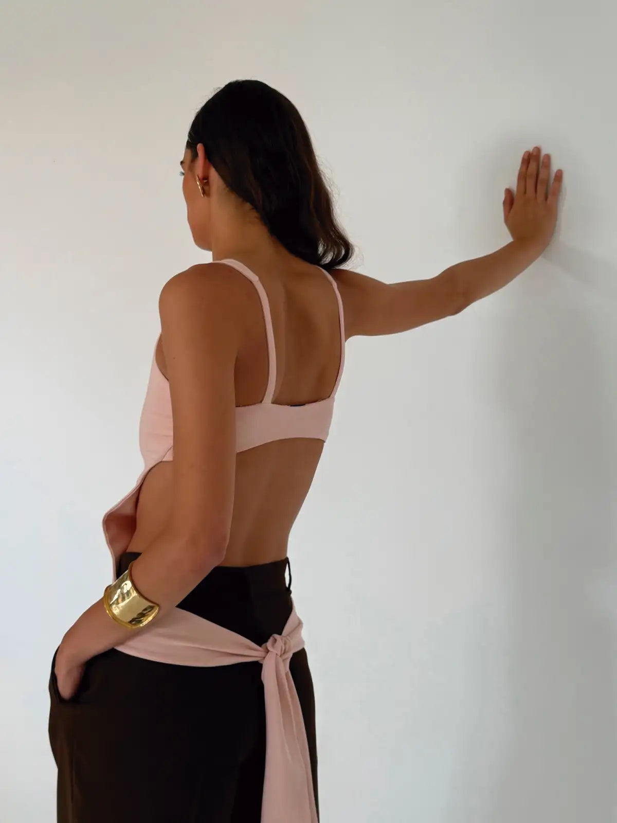 Tie your own story. With a soft pink hue and adjustable back bow, this top brings freshness, freedom, and effortless charm.